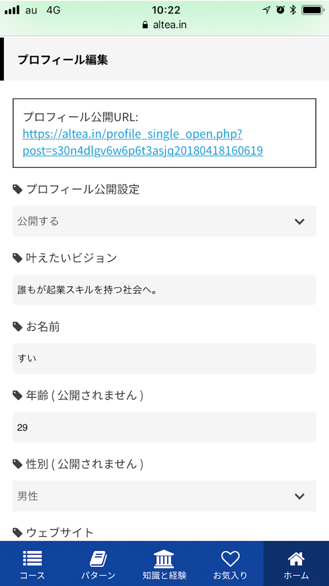 簡単な項目を入力するだけで、ご自身のプロフィールページを作成できます。公開したページはSNS等でシェアしましょう ( 公開か非公開かはいつでも変更および設定が可能です ※ 初期設定は非公開 ) 。