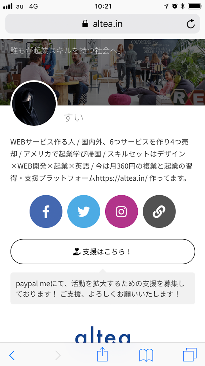 紹介文を自由に入力できるだけじゃなく、SNSやウェブサイトのリンクをまとめて貼る、ポートフォリオを作成する(現状PC版から更新)など、シンプルでミニマルな紹介ページが作れます。